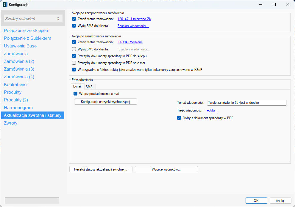 Akcje te wykonywane są w aktualizacji zwrotnej lub podczas importu zamówienia, jeśli w momencie importu zamówienia jest ono gotowe do realizacji