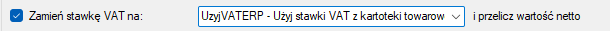 Zamień stawkę VAT na – pozwala zmienić stawkę VAT na produktach z zamówienia.