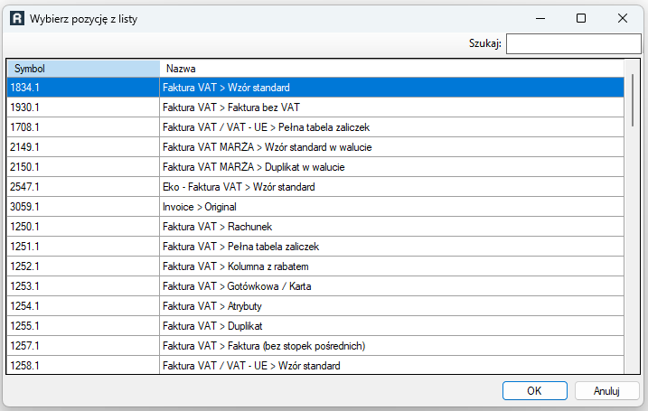 Jeśli integrator ma skorzystać z innego wzorca niż domyślny należy kliknąć (nie wybrano) po kliknięciu otworzy się okno wyboru wzorca.