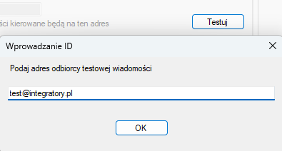 W tym celu należy kliknąć przycisk Testuj, wpisać własny adres e-mail jako odbiorcę i zatwierdzić OK